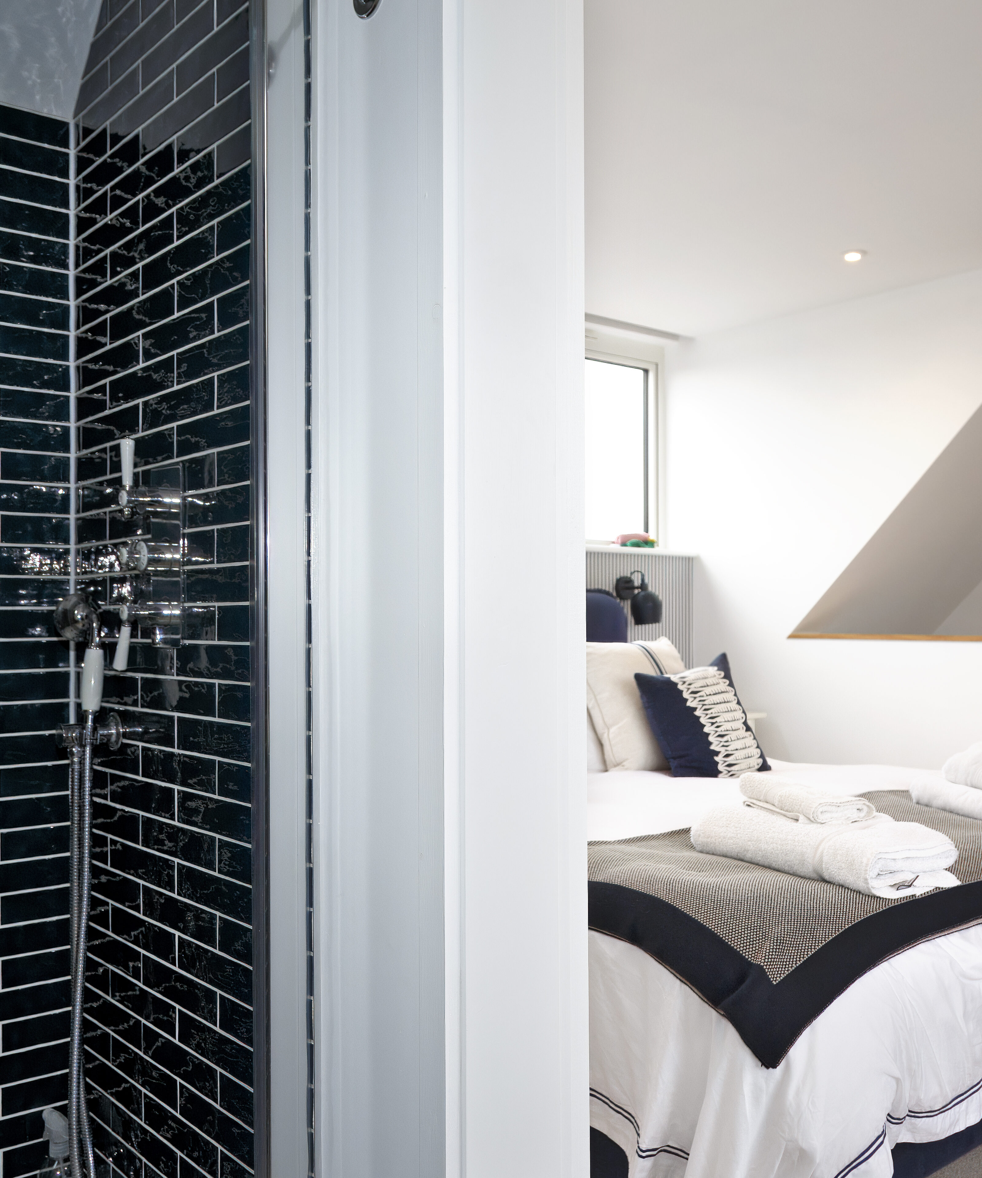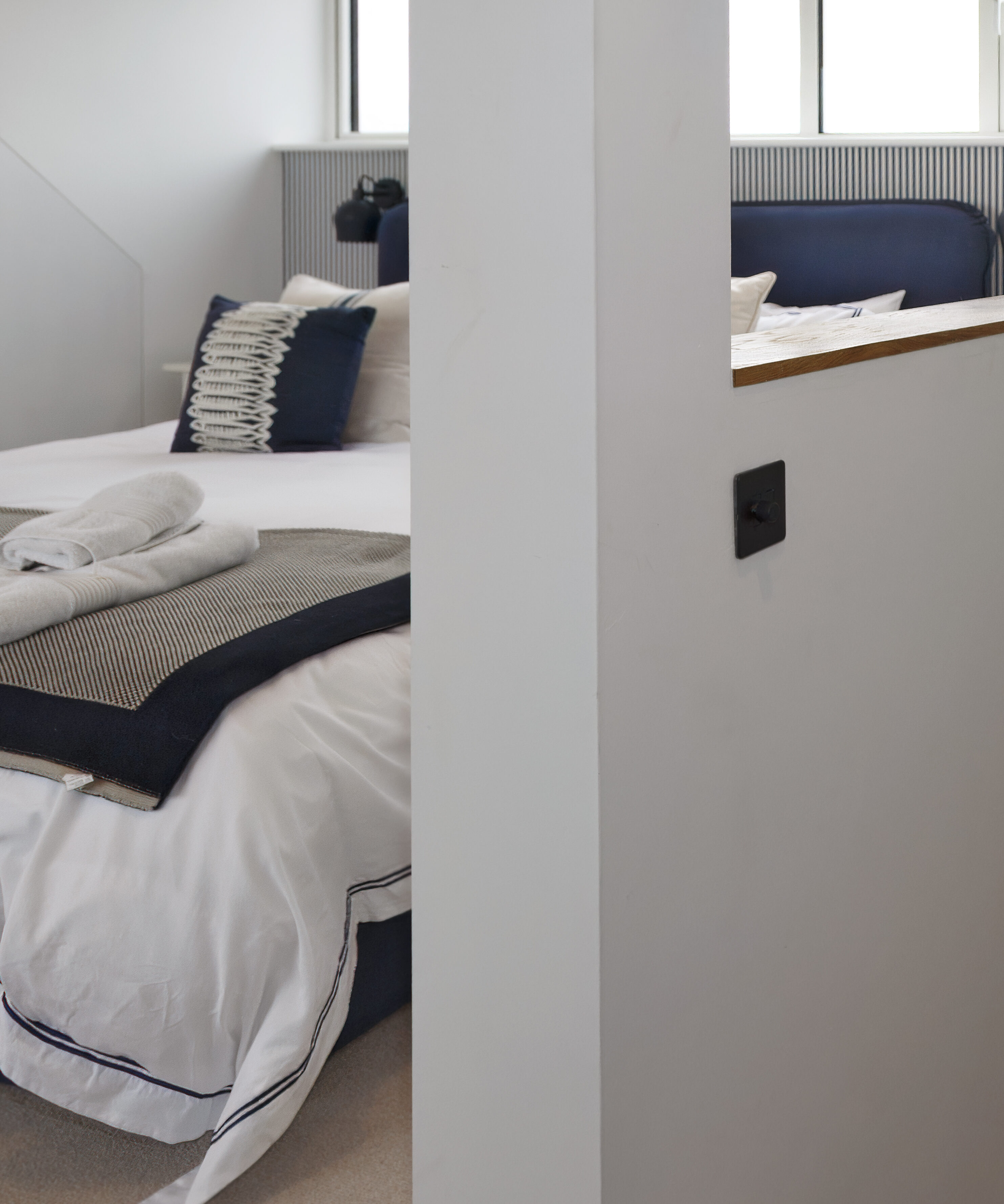 With a restricted plot and excellent views from the top, a small pair of single-storey flanking extensions provide additional family living spaces to the rear at ground level while generous new dormer windows front and back celebrate the coastal views and create a bright and airy new loft-level master suite added to the existing accommodation on two levels. Targeted internal structural alterations allow daylight into the heart of the home and enable a more flexible and contemporary layout.