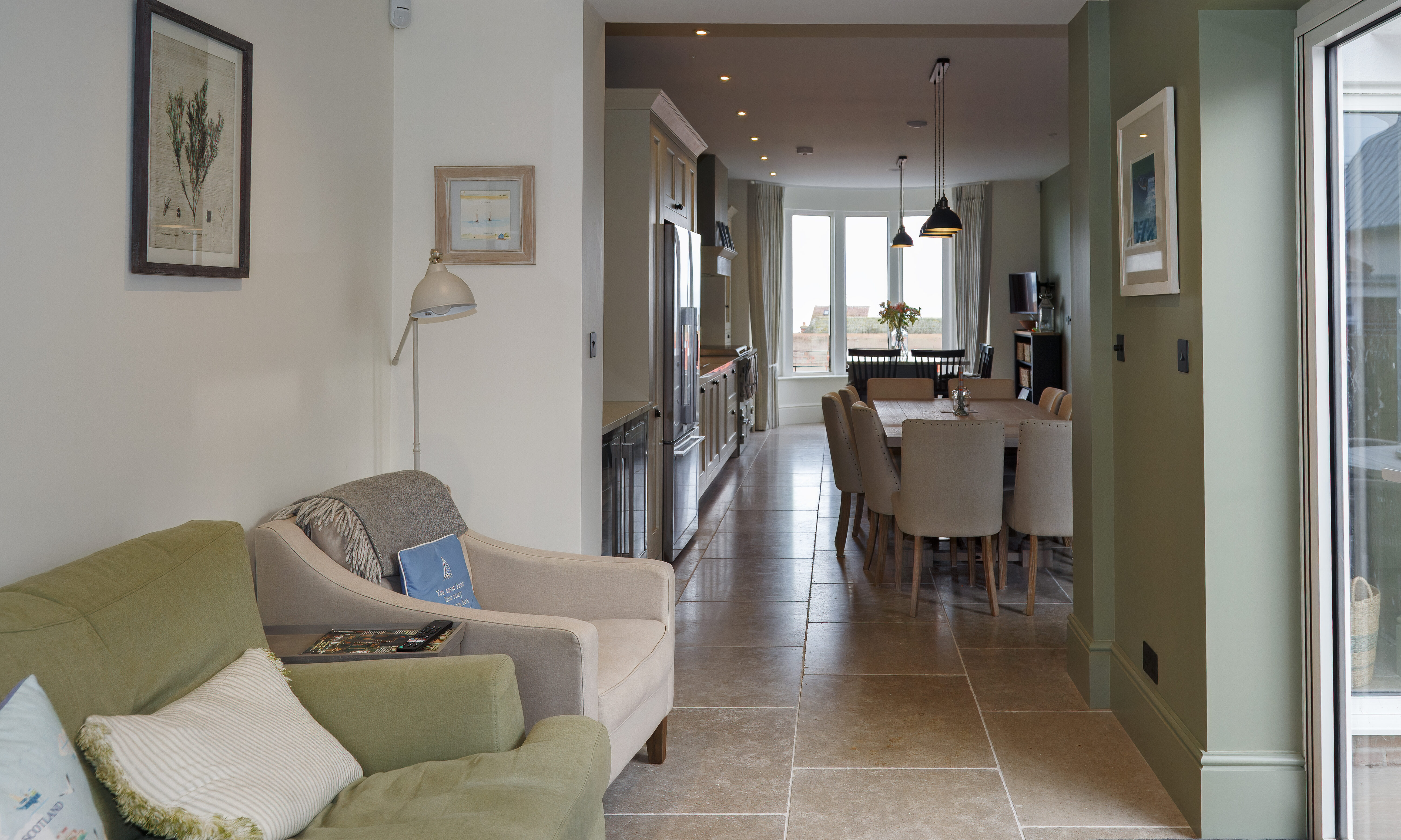 Fronted with two full-height bow windows looking out to sea, this Edwardian villa has been carefully restored on the outside and eased open internally to manage the needs of a modern dwelling.