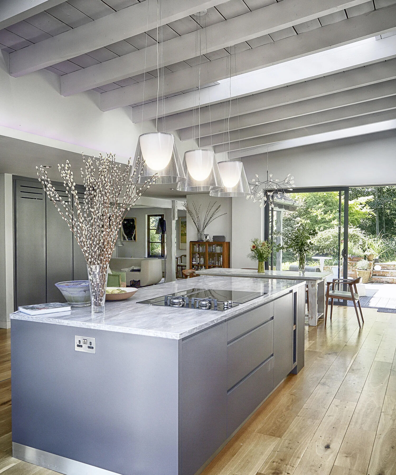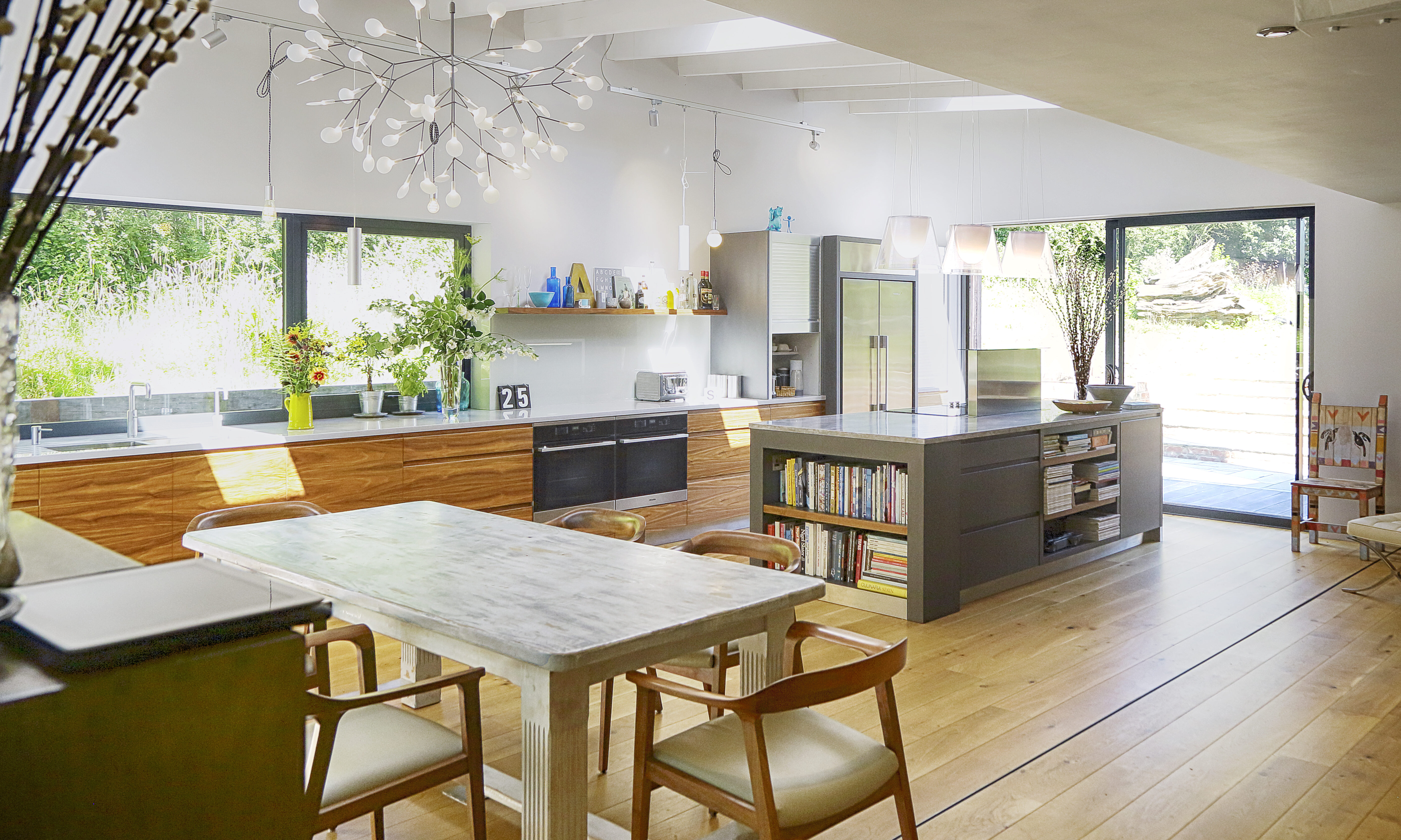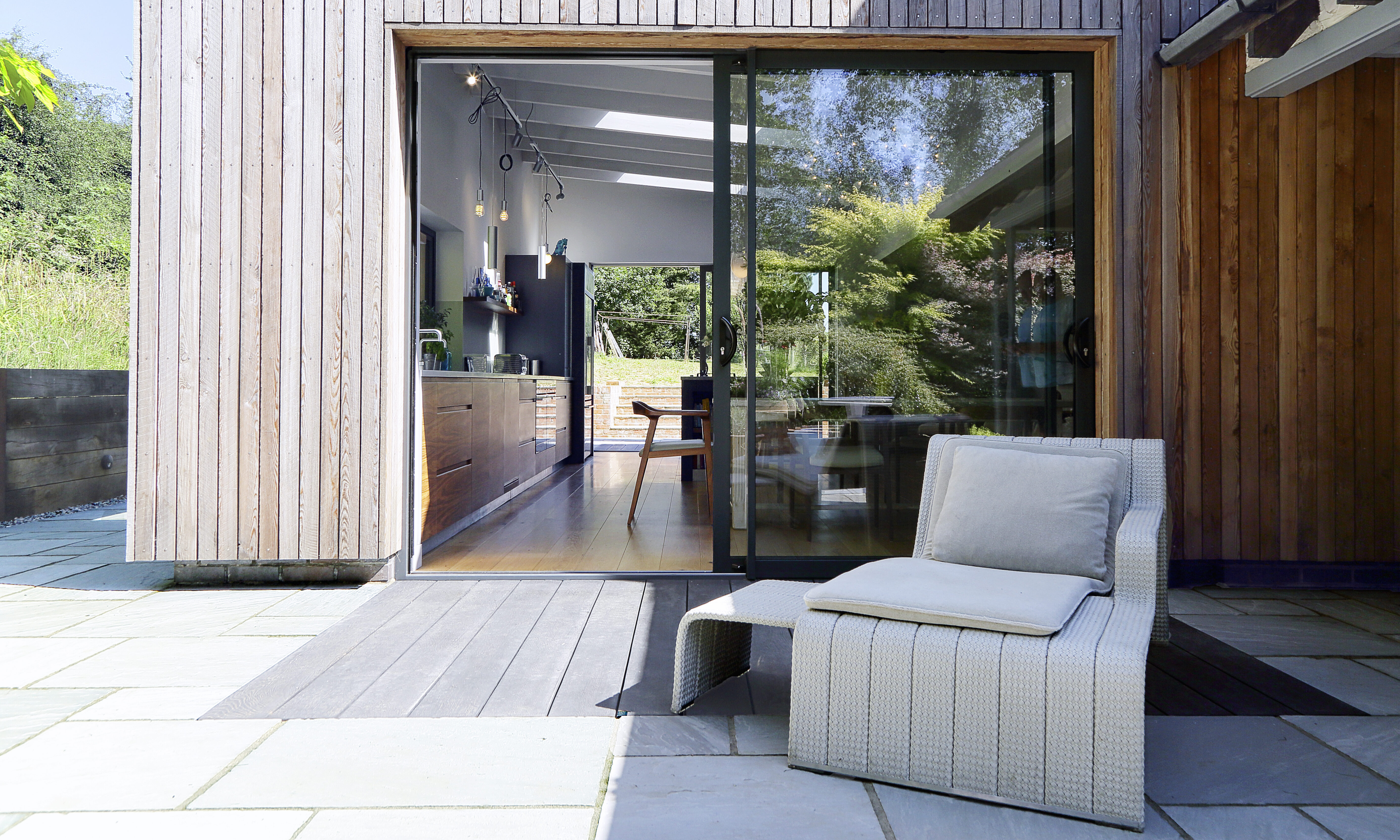 Quietly veiled within layers of wild and cultivated plants and trees, this existing timber frame house from the 1960s was the site of project for a large extension to enhance the ground floor accommodation for family and friends.